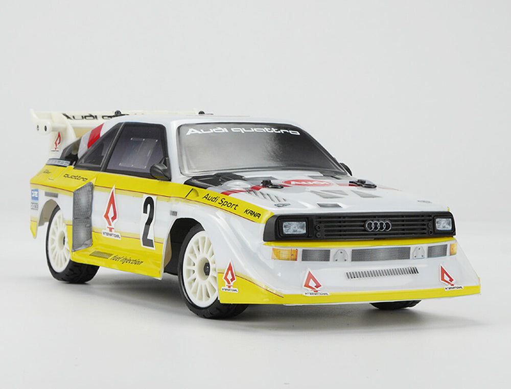 Just 214 examples of the 1:1 Sport Quattro were ever produced, but in collaboration with Audi, we have secured the licencing rights to reproduce the car in slightly larger numbers, with a more user friendly price point and size! Our passion for all things motor sport and rally related shines right through with this new release, we spent a long time to recreating the body as accurately as possibly in a 1/24th version, and with its 8000kv Brushless power, Permanent 4WD, 2S LiPo compatibility and precise 2.4GHz FHSS Radio Gear, its the perfect gift for any true petrol head or purchase for Historic Rally enthusiasts world wide.