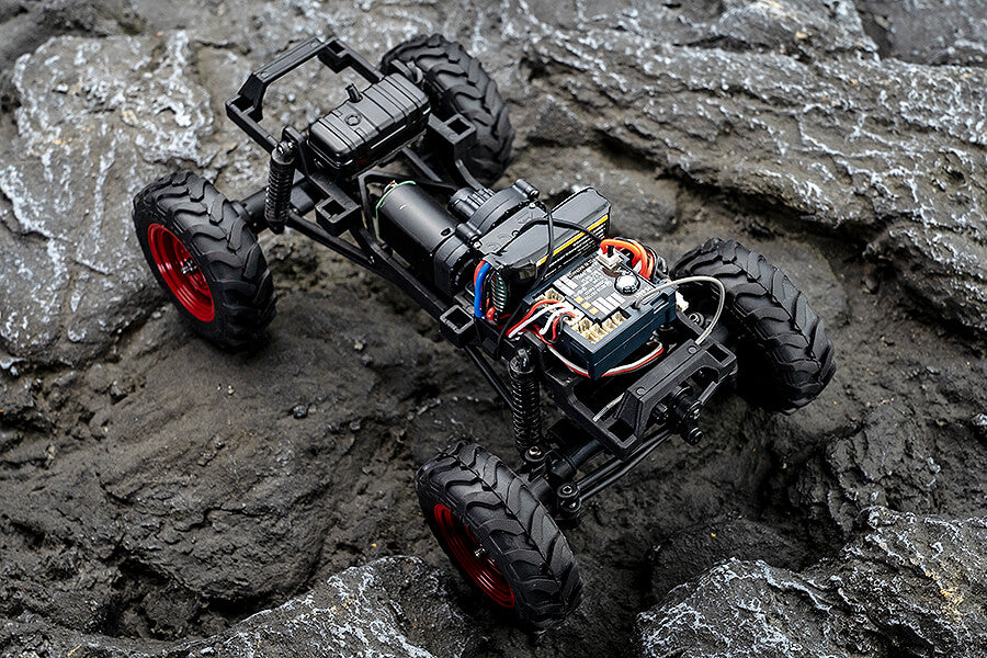 The two-speed gearbox uses the CH3 of the remote control and is operated by a 9G steering gear. The low gear reduction ratio is 99, which is larger than that of similar products currently on the market. The torque output is strong, and easy for extreme climbing. The high gear reduction ratio is 24.75, and the speed is higher than that of all similar products currently on the market. You can experience the fun of high-speed breakthrough, small jump, and even heading up.