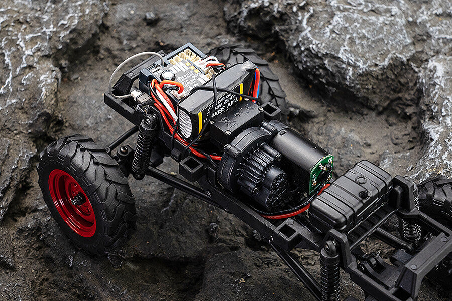The crawlersare generally equipped with front and rear straight axles to simulate the locked state of the real car differential to improve off-road passing ability. The FCX24 is equipped with a straight axle by default, but the planetary gear differential can also be replaced with high-viscosity silicone oil to simulate the driving effect of an LSD limited-slip differential. After installing the differential, the ultimate climbing ability will be reduced, but a smaller turning radius and a more stable high-speed driving quality can be obtained. Simply put, the straight axle is suitable for extreme climbing, and the limited-slip differential is suitable for high-speed off-road. The choice is yours.