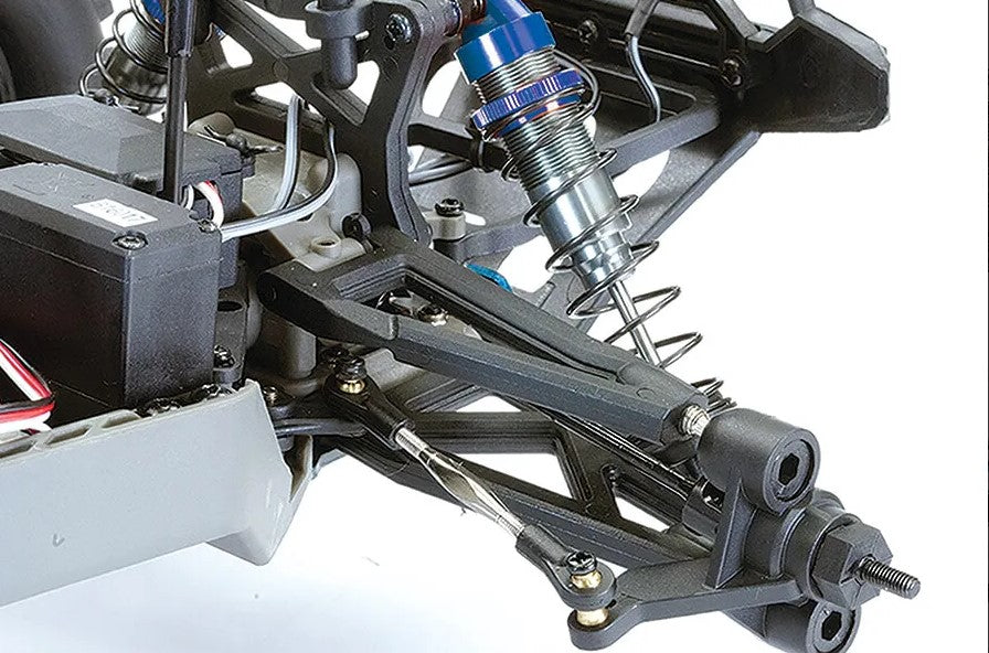 Long throw oil filled shock absorbers. Adjustable turnbuckles.