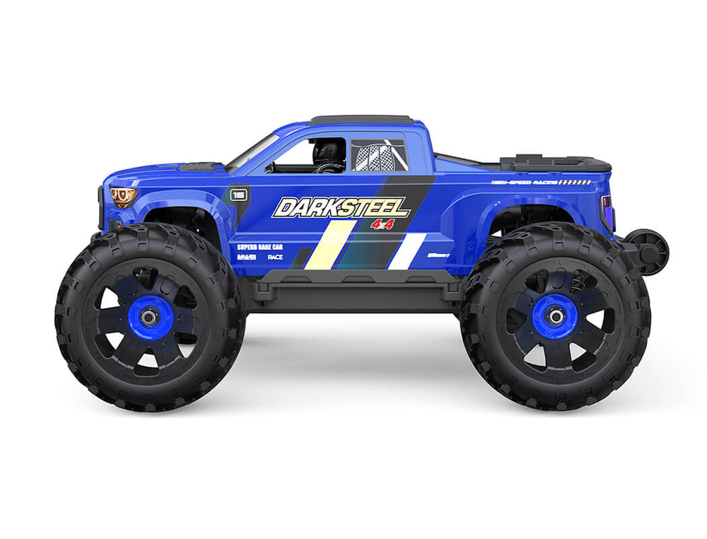 With 4WD drivetrain, metal pinion gear, and a 45A brushless ESC, the monster truck tackles demanding conditions. The massive 180 mm tires provide optimal grip, while the oil-filled shock absorbers and the robust multi-link suspension soak up even hard landings.