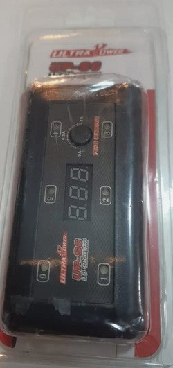 The UltraPower UP-S6 employs a circuit that features 6 totally independent but identical power outputs which are powered 4.35W each. It's designed for charging single cell Lipo and LiHV. Insert the battery lead to the right connectors at each port. The charger can charge up to 6 batteries at the same time. The charging current can be adjustable from 0.1-1.0A and also supports 5V, 2.1A USB charging for phones, tablets, or other USB chargers. The charging status and voltage are displayed on digital segment LED indicators.
