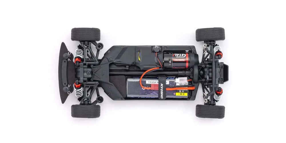 For the pure enjoyment of R/C car driving, the combination of a beautifully reproduced car body with the FAZER series chassis can’t be beaten. Kyosho has taken its standard touring car chassis and given it a full model makeover that has evolved performance to a new level. A simplified design with fewer parts has improved maintenance efficiency and reduced weight while core strength and rigidity has been increased through new materials and ribbing and stiffeners on front and rear. In addition, the symmetrical chassis design synergizes excellent front-rear balance through the suspension with responsive control, irrespective of power source. Featuring slipper clutch, front & rear gear differentials, oil shocks and full ball bearing specs, the high durability and impact resistance allows drivers to unleash the full potential of the chassis. Brake disc wheel hubs with two different offsets (0mm, +5mm) provide compatibility with 190mm and 200mm width body styles and allows the wheelbase to be adjusted to 274mm by replacing some parts (sold separately) for compatibility with other 1/10 scale body styles, in addition the body included. The Readyset package comes fully assembled and includes everything except charger and battery for the chassis, and batteries for the transmitter.