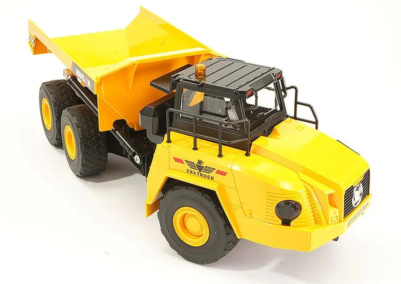 Modelled on the super-sized, heavy duty articulated dump trucks used to transport loads over rough terrain this 1/16th scale, 11 function version is perfect for some small scale quarry jobs. With the truck bed mounted separate to the cab, the articulated dump truck can make tighter corners and have more flexibility to move over rugged spots, unlike fixed trucks. With authentic engine sound and cab LED warning light it’s ready to take on the heavy jobs.