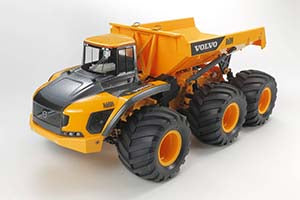 Our fun G6-01 chassis has seen some fun fictitious 6-wheelers and some real-life vehicle inspirations in the form of a school bus and semi-truck. This truck recreates a subject in the form of a working vehicle: Volvo’s A60 hauler. The actual vehicle is a revolutionary design, offering exceptional flexibility and mobility as well as the sheer strength required to haul loads in quarries and other similarly grueling workplaces.