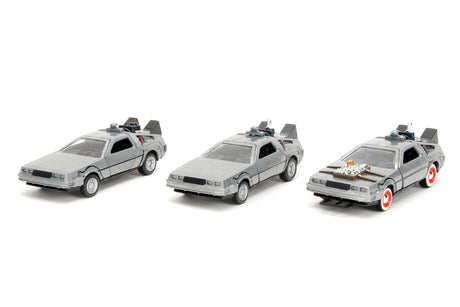 Jada Die Cast Collectables - 1:32 Back to the Future DeLorean 3 Car Collectors Set