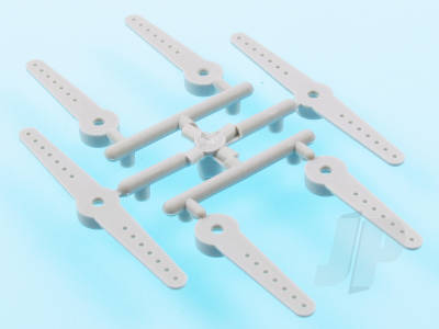 AT LAST, servo arms long enough for the extra throw needed on the electric 3D airplanes! The DU-BRO Micro Servo Arm XL includes (4) single arms, as well as (2) double arms. These arms have had extra special attention given to weight, strength and performance. Made from 100% virgin nylon, they can stand up to the stress of 3D aerobatics and still remain lightweight. The arms measure 1" from the center to the outer edge.The Micro Servo Arm XL comes in (4) different versions to accommodate various micro servos on the market.This version suits the following servos:JR 241, JR 281
