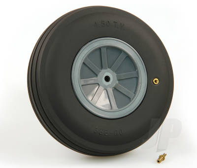 450TV Tire Width 1.375 (34.9mm) Our treaded wheels are narrower in width to fit inside wheel pants and retracts easier. Comes with 3/16 (5mm) axle diameter and can be drilled out to 1/4 (6mm) if desired. Comes complete with our positive seal air valves and inflator adapter.