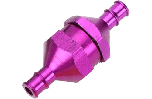 Constructed of two threaded aluminum parts which separate for ease in cleaning. Works for both gas and glow fuels. 130 micron mesh screen filter to filter out the smallest of particles and an o-ring for a positive, no-leak seal.
