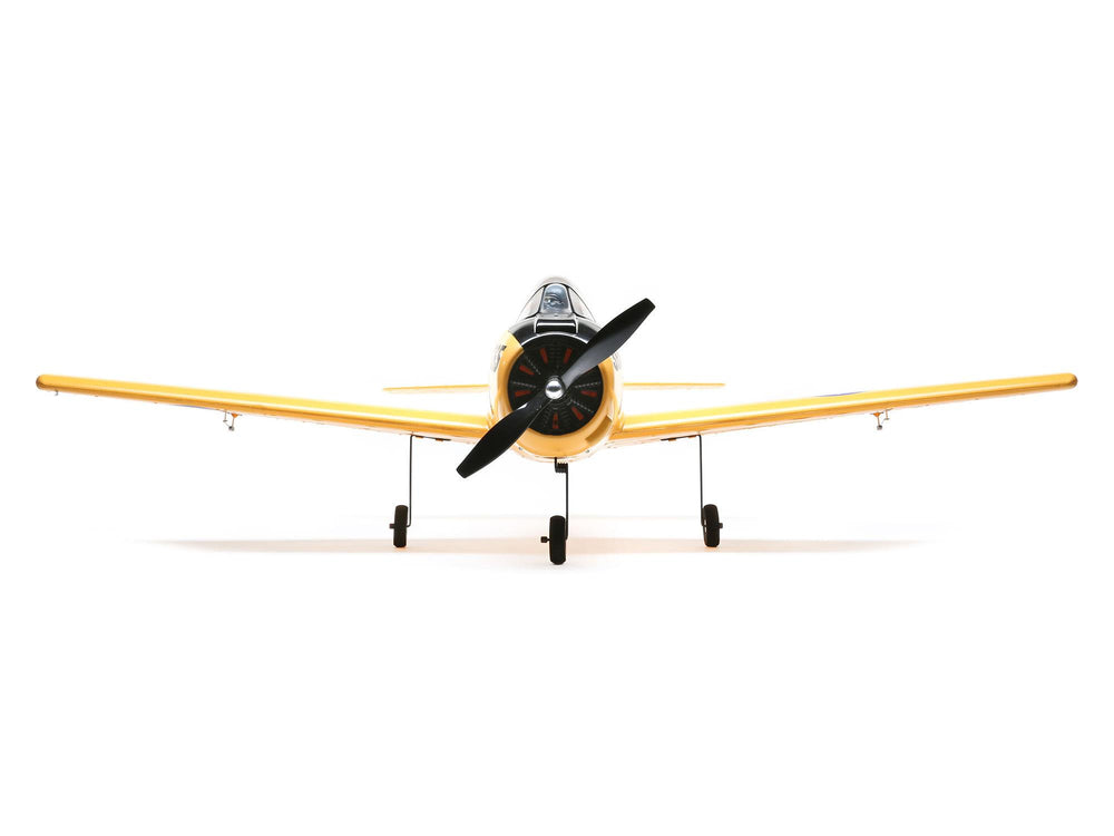 Updated and upgraded, including a fully-painted, high-visibility trim scheme, the E-flite® T-28 Trojan 1.1m reaffirms its status as an excellent "next step" model for low-time pilots who have mastered a trainer and are looking for their first low-wing, sport or warbird model — while expanding its performance for experienced pilots with higher speed and higher energy aerobatic capabilities! With a common 3S 1800–2200mAh LiPo battery, the brushless power system featuring a specially-tuned motor delivers plenty of thrust and speed for low-time to intermediate pilots. Or, install a 4S battery for more speed and unlimited vertical performance without modifications or upgrades! Four servos and linkages are factory-installed for full aerobatic capability to perform loops, rolls, knife-edge, inverted flying, and more. The composite-reinforced EPO airframe includes stronger parts to handle the higher speeds and additional aerobatic capabilities, and for improved durability overall. Final assembly is fast and easy, no glue required, and the T-28 fits into almost any vehicle fully assembled — or the wing can be removed for even easier transport and storage. Any traditional RC flying field with paved, dirt or grass surfaces makes a suitable flying site, although skilled pilots can fly in smaller areas such as large parks or sports fields. The T-28 is inherently stable like the full-scale trainer platform, but the BNF® Basic version, featuring a Spektrum™ AR631 receiver, gives low-time and intermediate pilots the added benefits of exclusive AS3X® and optional-use SAFE® Select stabilization technologies. Best of all the ESC included with both versions is telemetry-capable to deliver real-time battery voltage, current, motor RPM, and other data via compatible receivers (including the AR631 included with the BNF Basic version) and Spektrum™ AirWare™ equipped transmitters. And it all adds up to offer improved scale-like and sport flying, higher speed and higher energy aerobatic capabilities to deliver a sport scale flying experience you simply can't get anywhere else!