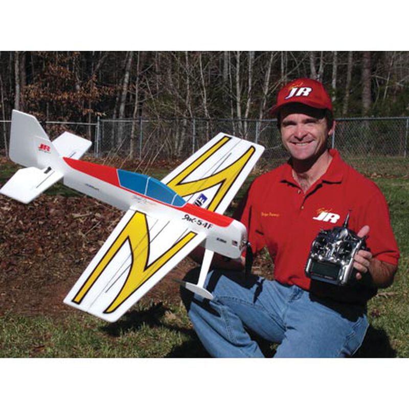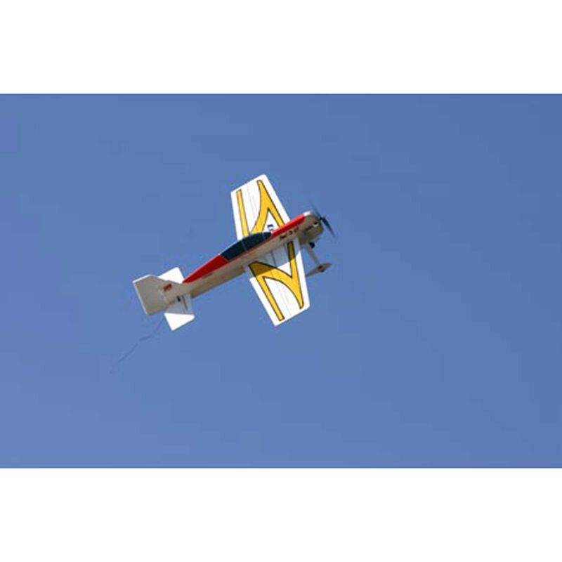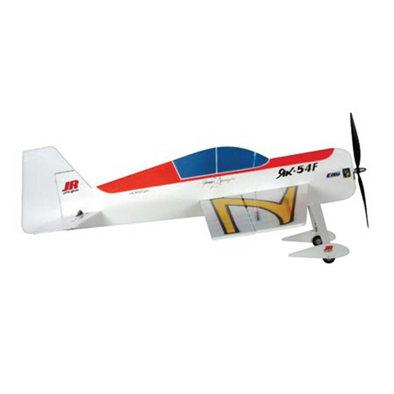 From the fertile imagination of 4-time TOC winner Quique Somenzini comes E-flite's Yak 54F 3D ARF. Featuring Quique's unique 3-dimensional A-frame foam construction and flat-wing design, the Yak is an extreme electric model capable of a broad assortment of thrilling precision and 3D aerobatics. Key to its intricate maneuverability is its lightweight A-frame fuselage, which reduces flex to provide precise control. It's also stronger and stiffer than typical profile planes, which allows for more stable performance, even in windier conditions, so that a seasoned pilot can still attain his aerobatic potential outdoors. From high-speed rolls to super-slow harriers, the Yak's smoothness and precision provides a wider range of performance than any other foamy out there. A gearbox and prop are included and for optimum performance, the Yak 54F should be flown with an E-flite Park 370 brushless motor (EFLM1000), 20-amp ESC (EFLA311) and 1320mAh 3-cell Li-Po battery pack (THP13203S). For a direct-drive alternative, try the Park 400 Outrunner series (EFLM1305).
