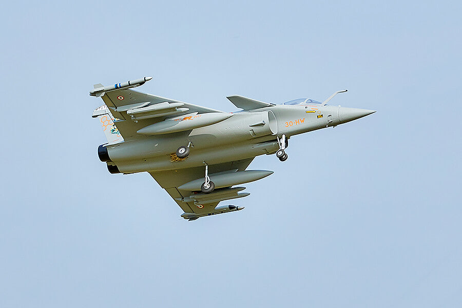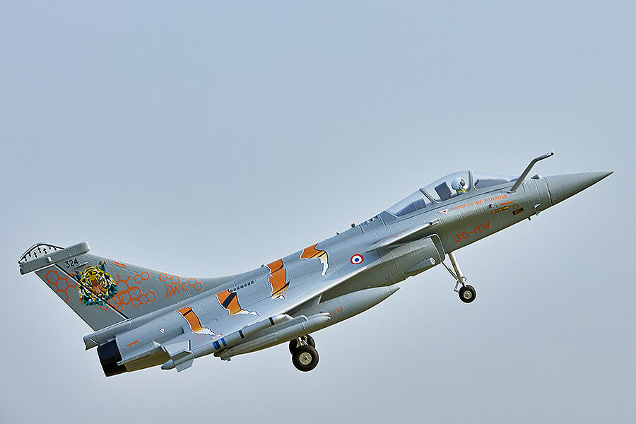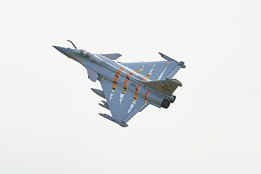 Developed to replicate both the looks and performance of the real aircraft, FMS has dedicated its decades long experience into designing the 64mm Rafale. The 64mm Rafale has a high degree of restoration, within the maximum range allowed by the budget. Details such as scaled outlines, delta wing, pilot figure, cockpit interior, panels, removable armaments, auxiliary fuel tanks, refueling probe, targeting sensor, exhaust