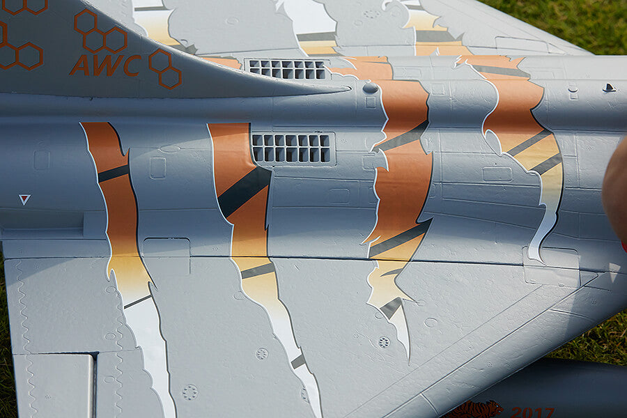 While the FMS 80mm Rafale has attracted extensive attention, we’ve also noticed flight fans wiliness to of collect Rafales of different sizes and trim schemes. After two rounds of voting at home and abroad, the 64mm “NATO Tiger Meet” stood out from all other competitors. After six rounds of testing, the FMS 64mm Rafale “NATO Tiger Meet” has lived up to everyone’s expectations and is now officially launched.