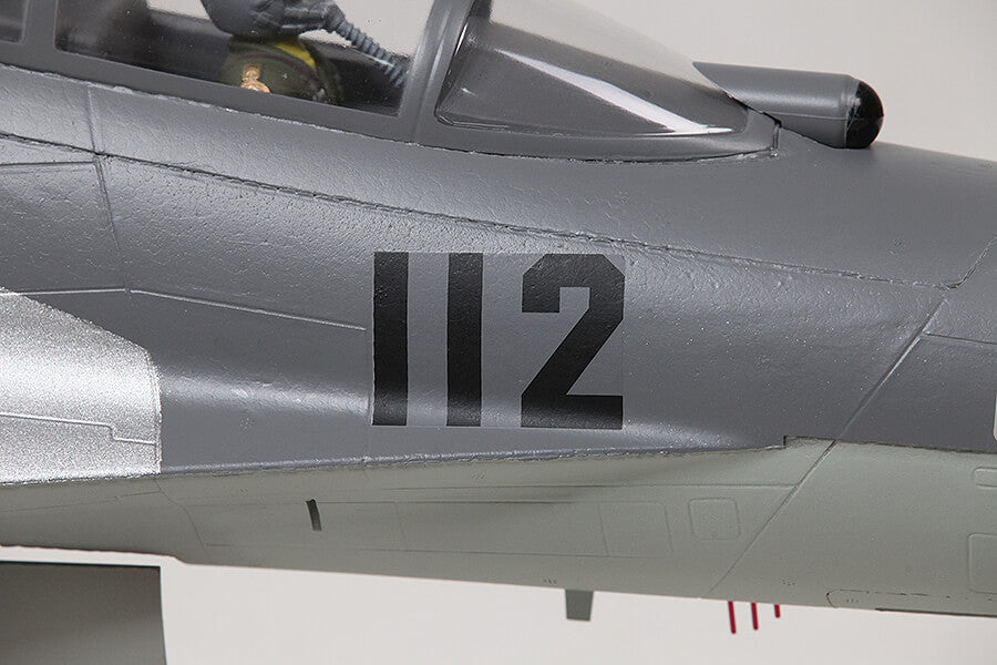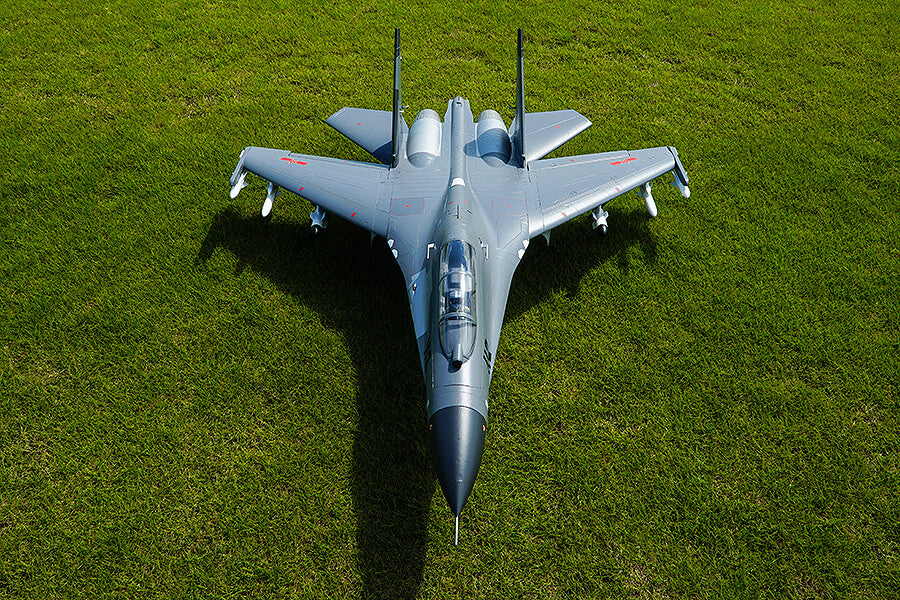 Superlative dark gray paint, smooth aerodynamic contour, outlines a unique sense of modern technology- FMS dual 70mm EDF J-11.