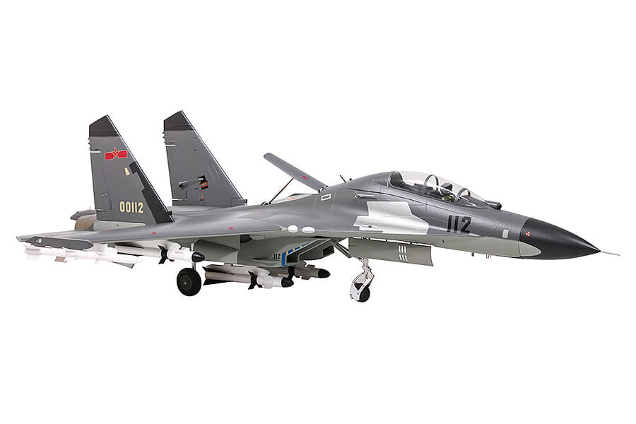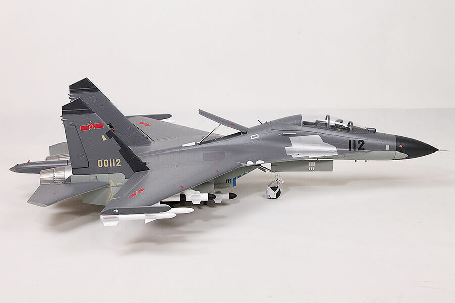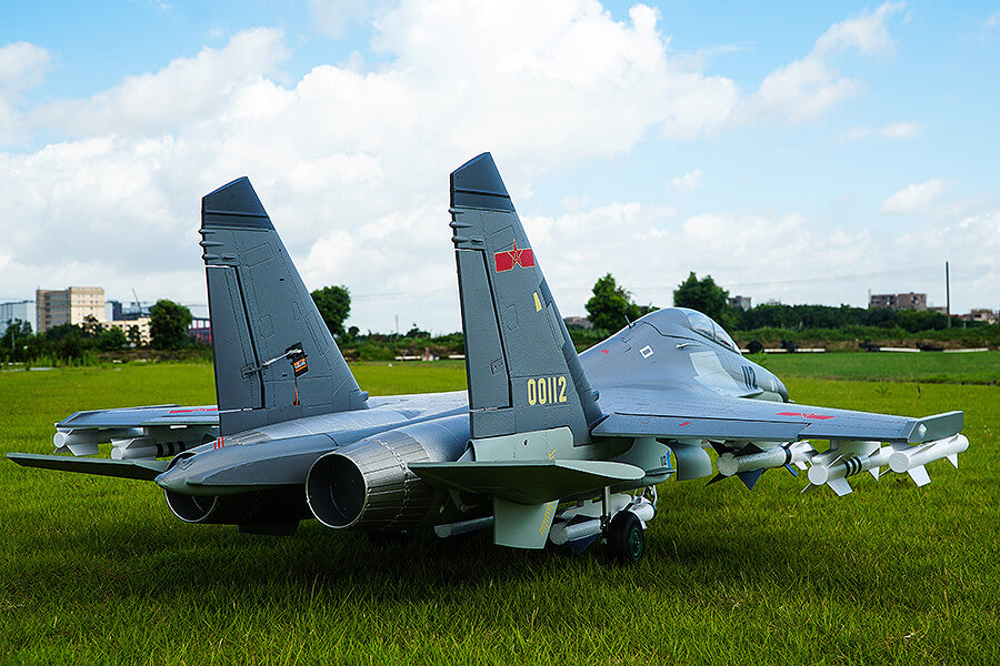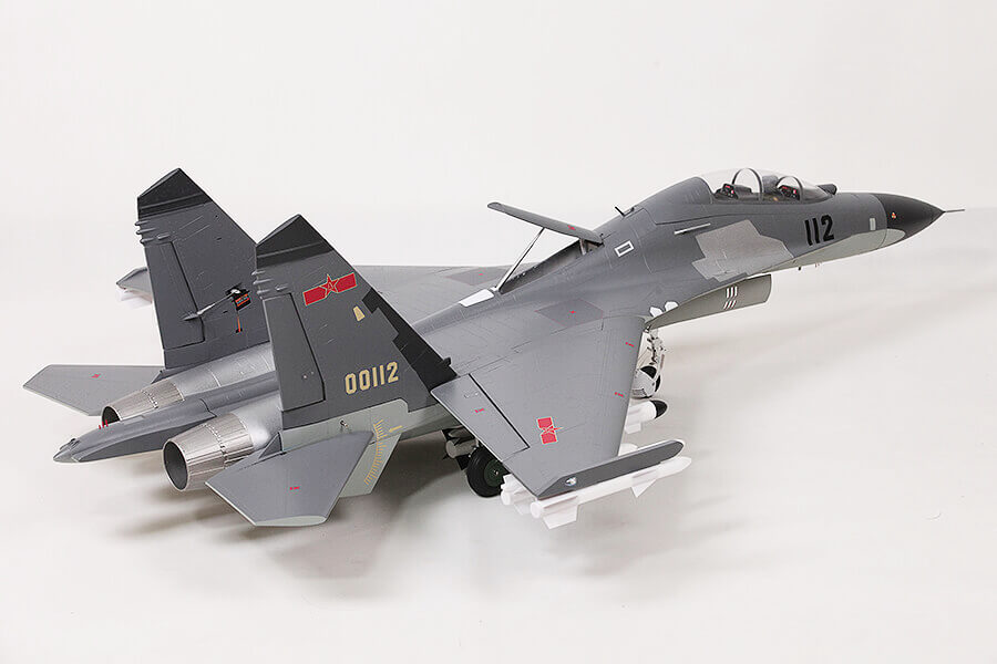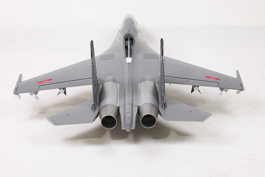 In terms of appearance, FMS captures the essence of this fighter. Functional restoration, such as large size airbrake, LED navigation lights & landing lights, full-motion tail, landing gear door with sequencing effect, retractable landing gear system that can resist hard landings, static restoration such as cockpit details, panel lines, detachable ordnance, pilot, and highly recognizable trim scheme, all these details combine to make the FMS J-11 stand out on the tarmac and in flight.
