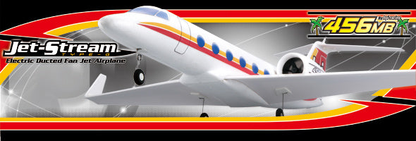 Business Jet Style and Ease The Jet-Stream Type G takes the concept of the business jet down to a manageable size to let you fly in luxury and style! Available with or without the radio gear and other electronics, this is a fun and fast plane to fly wherever you can. With its realistic looks and friendly flight characteristics, this will be the first plane you reach for when you want to impress your friends! With powerful dual brushless motors and long-life lithium-polymer batteries, you get plenty of flight time and loads of power! The brushless motors and the enclosed motor pods sound amazing in flight, you have to hear them in action! Enclosed Motor Pods The Jet-Stream Type G encloses both brushless-type motors in realistic engine covers which look just like the real thing! The covers also help the motors produce more thrust and protect the propellers. Super-Light Foam Construction The entire aircraft, from nose to tail, is made from a space age foam material that is highly resistant to crash damage yet extra light in the air. This gives you a strong and durable plane that is easy to launch and fly! Ready-To-Fly Electronics Whether this is your first RC aircraft or just the latest addition to your hangar, you'll have a fun and easy time getting airborne with 456MB! Complete printed instructions show you exactly what you need to do to get going, plus a professionally produced instruction DVD with step-by-step assembly instructions is provided in every 456MB box. The ARF (Almost Ready to Fly) version of the Jet-Stream Type G features everything the RTF version does, except there are no electronics included in the kit. You will need to provide the complete radio system, flight battery, a dual-motor electronic speed controller, and two motors. Easy to Use Charger and Battery The charger included with the RTF version couldn't be easier to use - simply attach it to your 12v car battery, plug in the lithium-polymer plane battery and the charger will automatically charge the battery. After about an hour, the battery will be fully charged to the correct voltage and you're ready for flight! The clamp-style power connectors allow you to recharge batteries at the flying field for maximum convenience and time in the air. You can also use the charger at home with a 12-volt power supply, available at any hobby shop. Jet-Stream Type-B Models 1. 66460 Jet-Stream TYPE-G RTF (includes fuselage, main wing, elevator, propellers, motors installed, speed controller installed, micro servos installed, 4-channel radio, battery for plane, battery charger, printed instructions, 456MB training DVD) 2. 66468 Jet-Stream TYPE-G ARF (includes fuselage, main wing, elevator, printed instructions, 456MB training DVD) Specifications 1. Type of plane: Business Jet 2. Pilot Level: Advanced 3. Fuselage material: Foam 4. Wing material: Foam 5. Speed control: Brushless 6. Motor: Dual Brushless 7. Battery: Lithium Polymer, 11.1v 1000mAh, with balancing plug 8. Charger: 12v DC Balancing Lithium Polymer Rapid Charger (1 hr, clamp-on connector) 9. Wingspan: 900mm 10. Length: 940mm 11. Wing Area: 11.475 square dm 12. Wing Load: 32.24 grams per dm 13. Weight, ready to fly: approximately 400g 14. Radio: 4-channel, 35mHz 15. Type of tail section: Conventional 16. RTF/ARF: both available What You Need Both models require: 1. 8 AA batteries for both models ARF version also requires: 1. 3-channel radio transmitter 2. receiver 3. 2 motors 4. 2 micro servos 5. battery 6. charger