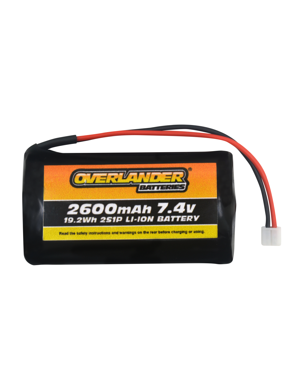 These Samsung 2600mAh 7.4V 2S 18650 rechargeable lithium-ion (Li-Ion) batteries in config 3 have a low self-discharge rate and long life expectancy with a high number of charge cycles. These packs come supplied with a JR connector for immediate use.