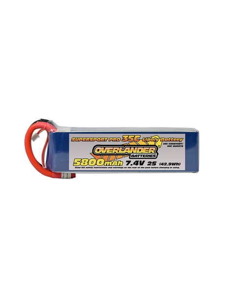 Overlander Supersport 2200mAh 7.4V 2S 35C Pro LiPo Battery Deans
