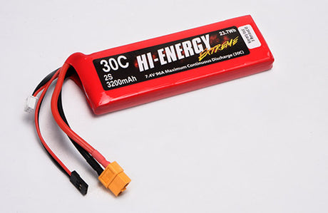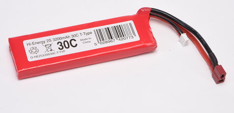 Hi-Energy 2S 3200mAh 30C Li-Po - T Type/Deans Connector