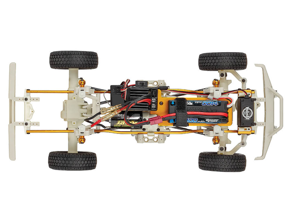 The ireRC10 4x4 Pickup Truck may be small in size, but is packed full of features. This rig is designed not only for scale looks with realistic wheels, tyres and body, this truck is built for performance as well. The steel ladder frame chassis provides the perfect backbone for this rugged little rig. The 4-link suspension, scale shocks, and soft rubber tyres give the grip and performance needed to climb over the roughest terrain. Transferring power to the rocks is a compact 3-gear transmission, plastic low-friction slider-type drive shafts, front steel CVA axles, and metal shield ball bearings. Get ready to hit the trails with the scale RC10 4x4 Pickup Truck!
