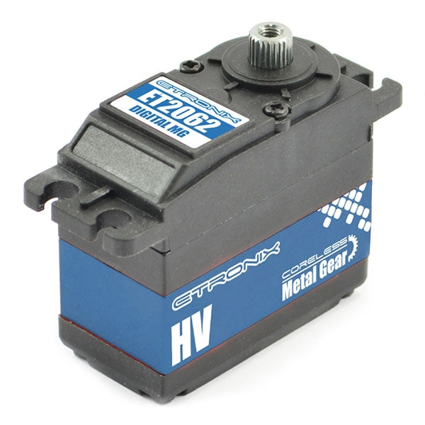 Etronix standard-sized coreless high-voltage digital servo. Full selection on servo horns, mounting rubber and hardware included.