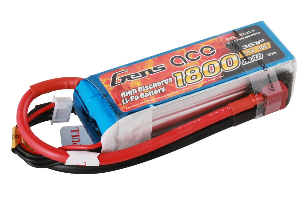 Gens ace Battery LiPo 3S 11.1V-1800-40C(Deans) 97x32x26mm 150g
