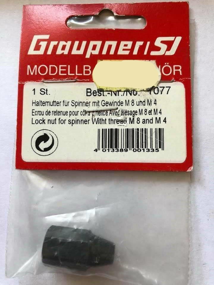 Graupner 1077 Spinner Nut For M8 Engine Thread & A 4mm Bolt To Retain Spinnner will be backordered from our supplier. Delivery will take between 3-5 working days & orders will be despatched once completed.