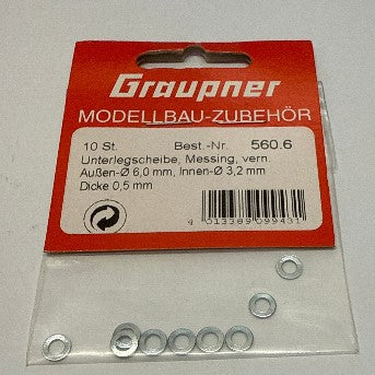 Graupner 6mm Dia. x 3.2mm Internal v 0.5mm Thick Washers - Pack of 10 560.6