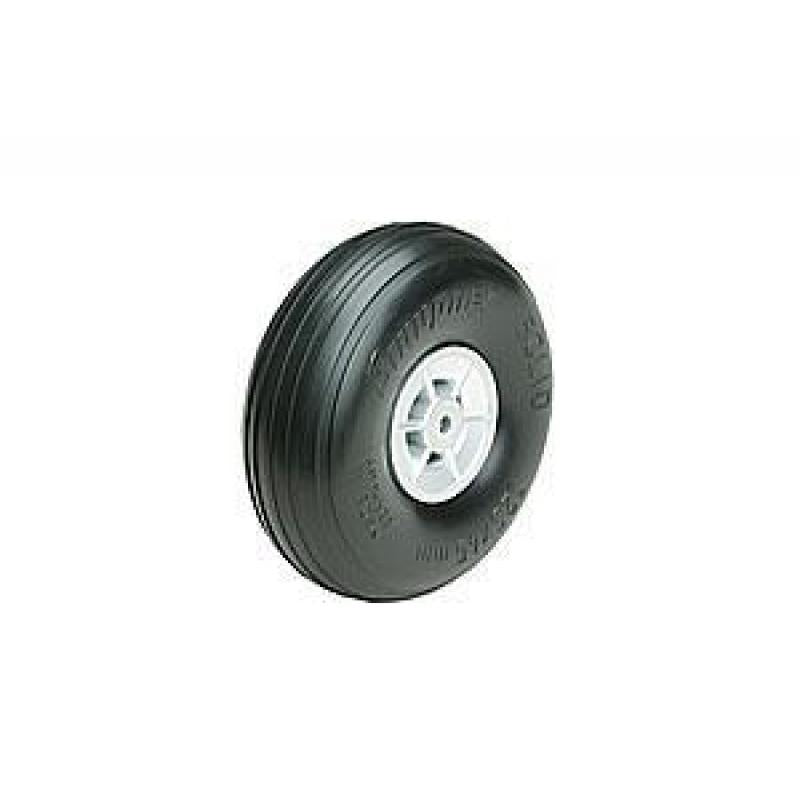 Prototype-like wheel, which thanks to a special rubber compound absorbs impacts and has a long service life. Can be used on motorized and glider models. Good straight-line stability is achieved through the grooved profile.