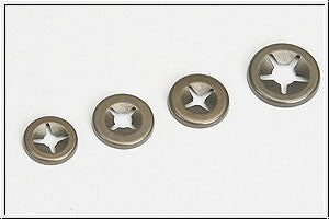 The retainer is simply pushed onto the axle to secure the wheel, eliminating the usual collet, and avoiding the problem of grubscrews which have to be thread-locked to prevent them coming adrift. Pack of 10