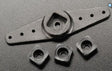Three servo spline adapters for Futaba, Airtronics (Sanwa), and Hitec.