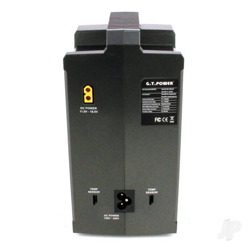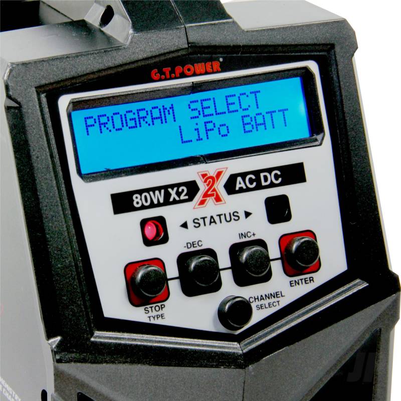 The GT Power X2 Multi-Chemistry professional charger / discharger offers a simple and safe solution to battery management. With two outputs, up to two batteries can be independently charged at the same time, using completely separate charge or discharge routines. With a choice of mains power or 11-18V DC input, the X2 is ideal for use at home or at the field. The backlit LCD screen makes it simple to select all of your charge parameters while also monitoring your battery's status in any light. Compatible with today's latest cell technologies, the X2 is the serious choice for charging LiPo, LiHV, LiIon, LiFe, NiMH, NiCd and Pb batteries