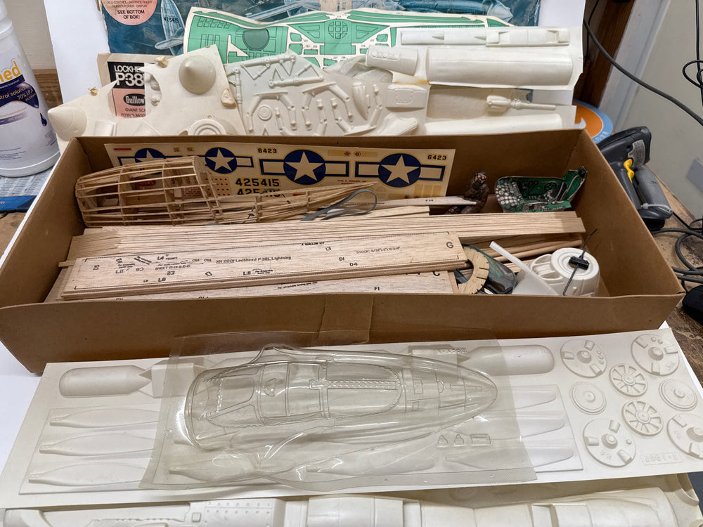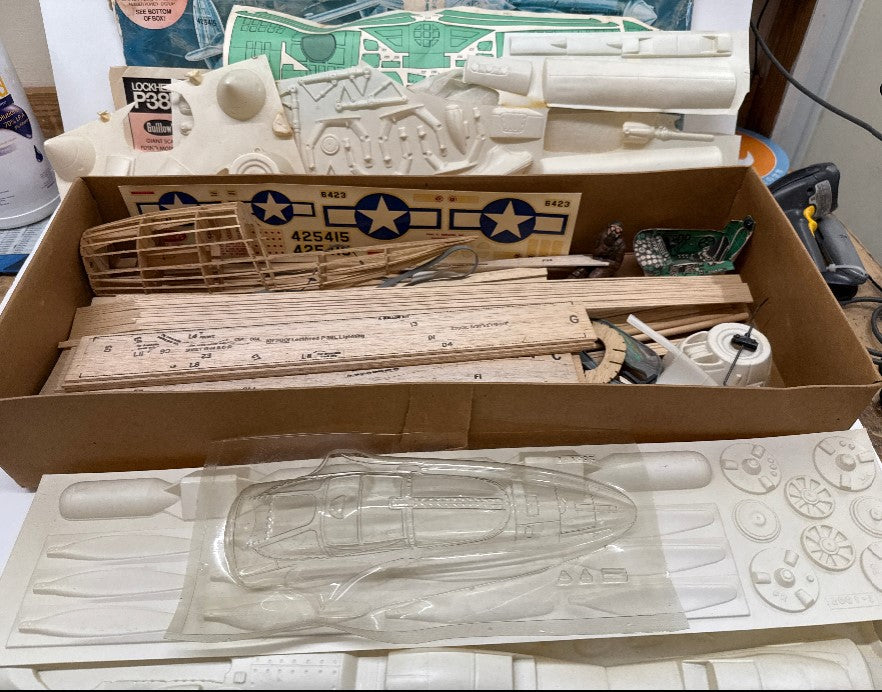 Guillow P-38 Lightning kit - Vintage Kit - SOLD AS SEEN Partly started - we have not checked contents - mnew kit price is £173.99