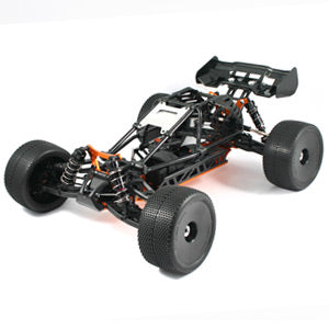 Using the SS chassis platform and suspension the Cage truggy features a complete aluminium roll cage similar to some of todays single seater full size buggies. Performance is everything you come to expect from HoBao with the quality and ruggeddesign ideal for the demands of 1/8 off road. Despite its complex appearance the lightweight and impact resistant aluminium tubler cage can be hinged forward quickly with the simple removal of four screws providing quick access to thechassis and electric components.
