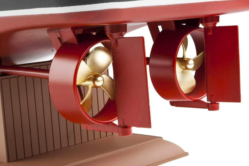 - Scale boat 1:36 scale port tug model for recreational riding. The model is supplied as a 99.9% RC set - to finish it, it is still necessary to hang tyres serving as bumpers on the sides of the ship. Preparing for the voyage involves charging the propulsion battery and inserting batteries or accumulators into the transmitter. The model is powered by two DC engines of the 280 series, powering two metal three-blade ship bolts stored in the rings. The direction of travel is controlled by a pair of rudders located immediately behind the ship's bolts. The control is provided by a two-channel transmitter 27 MHz AM, the on-board electronics consist of a receiver with interchangeable crystals, a two-way electronic speed controller and a servo rudder. The control of the rudder and engine speed is fully proportional, the range of the RC set is about 120 m. Access to the engine, batteries and electronics is provided by a removable cover at the back of the deck. The drive comes with a six-cell NiMH 7.2 V/800 mAh battery pack (sufficient for up to 20 minutes of sailing). The 200 mA mains charger is supplied with the model for charging. To power the transmitter, you will need eight pencil batteries or accumulators (not included in the RC set). The RC set includes: ready-to-voy model, two-channel 27 MHz transmitter, 7.2 V/800 mAh power battery, mains charger for power battery, plastic stand and detailed operating instructions. Length [mm] 560 Width [mm] 195 Height [mm] 420 Construction performance S0 Difficulty pilotage P1.