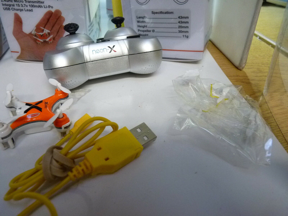 Being sold as ten Faulty/Damaged/non-working Twister neon-X which seem to have a battery issue but the faults might vary as they have not been tested they each come with a hand control and charge lead and a quad and some include spare propellers