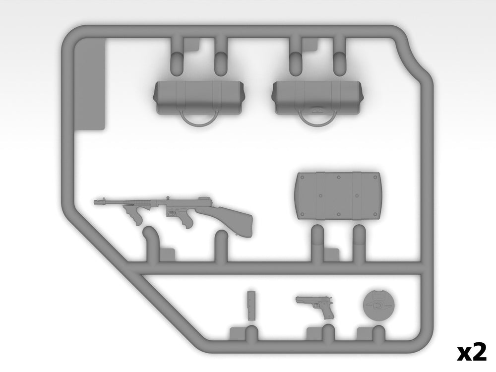 • Includes Thompson submachine guns (commonly known as Tommy guns), M1911 pistols, and money bags