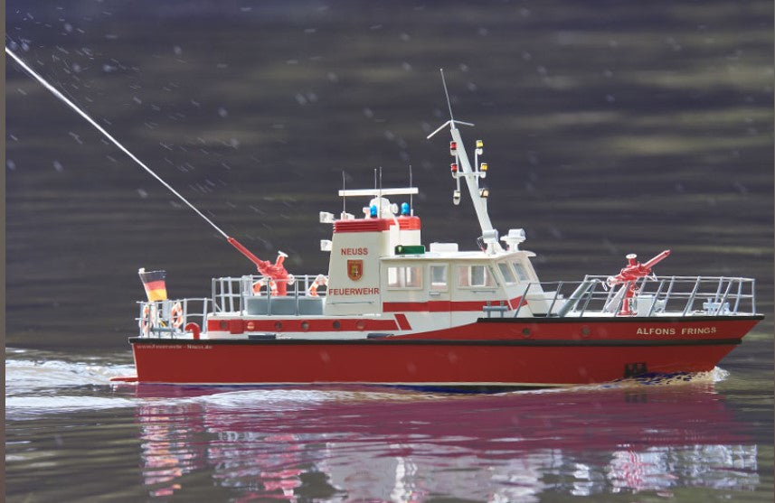 The FLB-1 is a model of a fire-fighting boat stationed in Neuss. It was put into service in 1983 and has been in service on the Rhine ever since. The ship is used for fire protection and rescue services. Due to its relatively compact construction, strong motorisation and the many details and functional possibilities, it has become a beautiful model that is not difficult to build and at the same time allows many special functions.