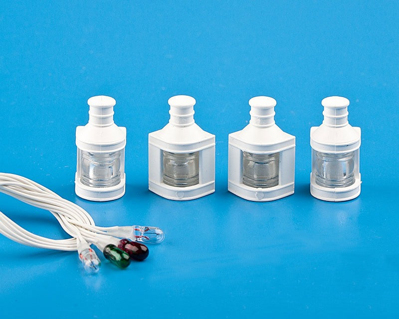 For the faithful lightning of larger ship models, 6 V / 50 mA, right green, left red, clear front and rear, incandescent lamps with 800 mm strand length, lamp housing Ø 10 x 20 mm