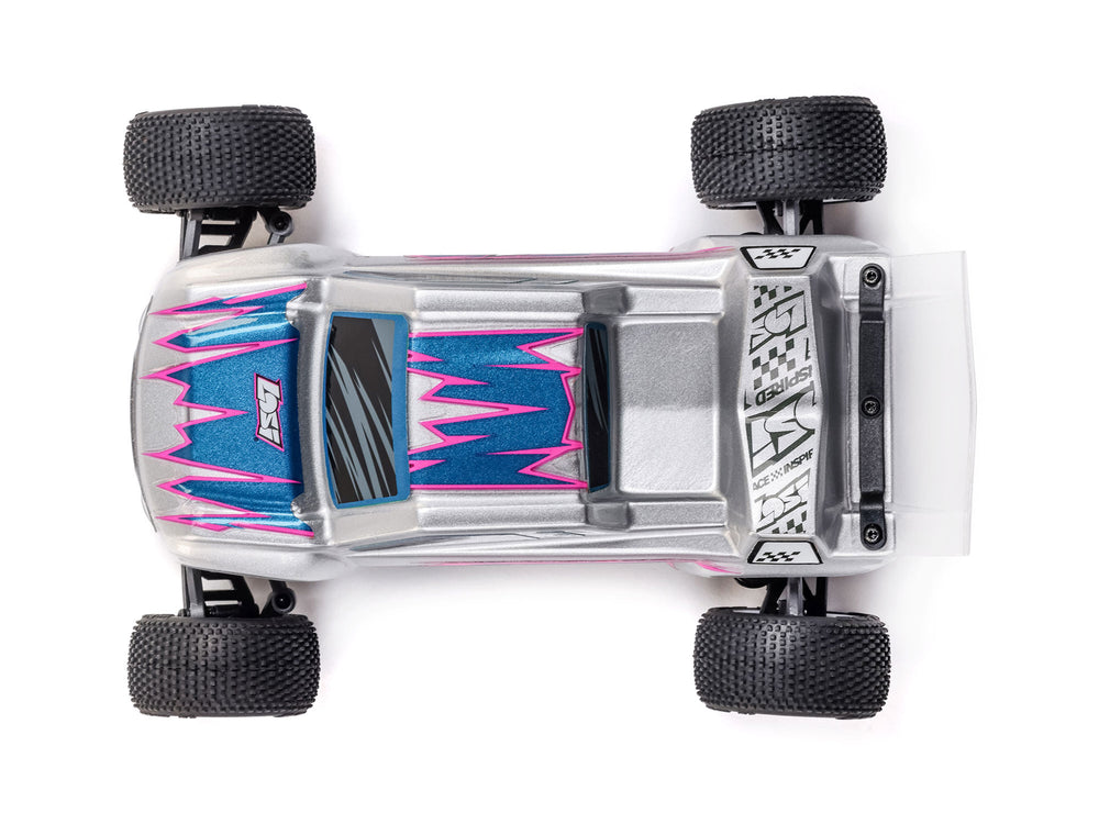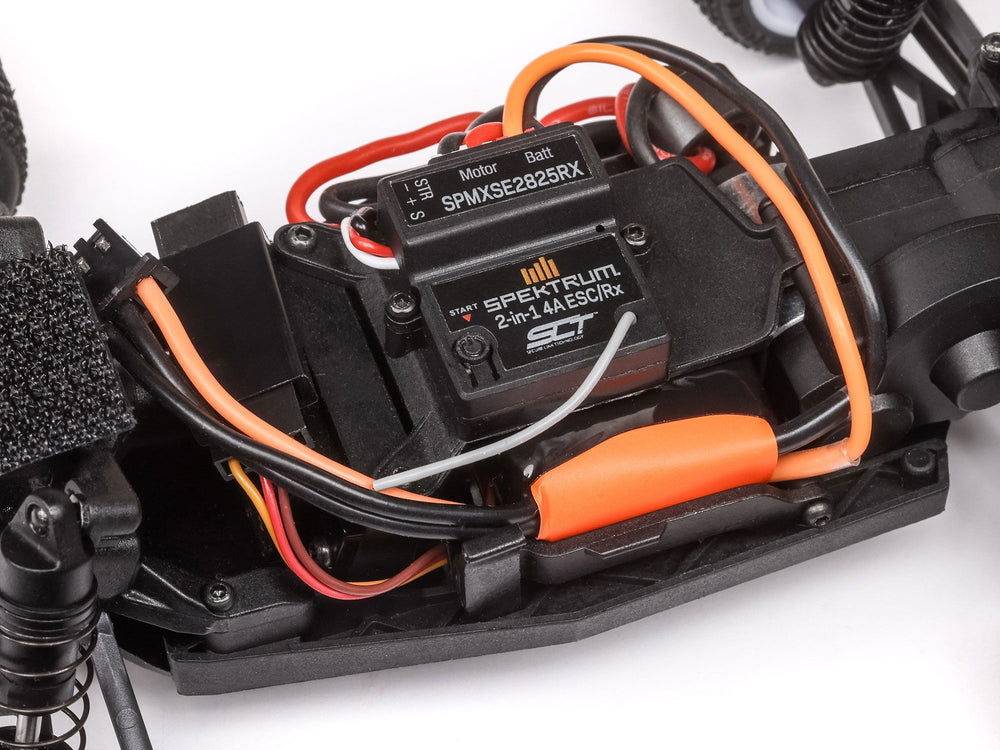 Product Details With its 1/28 scale size and TLR World Champion inspired design, the Micro-T stadium truck proves that big performance can come in small packages - and at a low price. The Micro-T makes it easy to enjoy racing with friends and family almost anywhere! Key Features Recharge in an hour and race nonstop for 25+ minutes 13+ mph top speed - insane for a micro! TLR-inspired design, with aluminium chassis and oil-filled shocks Fully assembled with no additional items needed Easy, cost effective way to get into RC racing In The Box (1) 1/28 Losi Micro-T 2WD Stadium Truck RTR (1) Spektrum 7.4V 350mAh 2S 30C LiPo Battery (1) Spektrum USB-C Charger (1) Spektrum SLT 2-in-1 ESC & Receiver (1) Losi 65T Brushed Motor (1) Spektrum 2.4GHz SLT2 Transmitter (1) AS-1 Micro Servo (4) AA Transmitter Batteries Misc. Tools (1) Instruction Manual Needed to Complete Not needed but recommended - Spektrum 65W USB-C GaN Power Supply (SPMX-1027) Losi 1/28 Micro-T 2WD RTR RC Stadium Truck Overview Many of today's RC racing enthusiasts cut their teeth on the original Losi RC micros introduced twenty years ago. The performance of those compact, race-inspired vehicles even impressed drivers of expensive competition models. With their low cost and race-anywhere convenience, however, Losi micros enabled hobby newcomers of all ages to join in the fun of RC racing. Now, by popular demand, Losi has brought back these popular micros. And once again, they're taking the RC hobby by storm. Like the originals, the 1/28 scale Losi Micro-T 2WD stadium truck uses top-grade engineering to deliver powerful capabilities at an unbeatable value, making it easy to share RC racing fun at its best with friends and family. With a design inspired by a Team Losi Racing (TLR) 2023 IFMAR World Champion, the Losi Micro-T proves that big performance can come in conveniently small packages. For example, Losi has the only micros in the industry with an aluminium chassis. Its front caster kick and side bends create a strong and rigid foundation to withstand jumps with ease. Tunable, oil-filled shocks are included for optimal handling. The Micro-T stadium truck can reach top speeds above 13 mph. That's absolutely insane for a vehicle of its size! But for RC newcomers who aren't quite ready for that power, the included Spektrum SLT2 transmitter has an easy-to-use, confidence-boosting "Rookie Mode". The stadium truck's speed can be limited to 50% or 75% of its full potential simply by pressing a switch on the transmitter's back. That allows young or inexperienced drivers to learn control skills safely, at their own comfortable pace. All of the accessories that come with the Micro-T are of better quality than what's normally included in ready-to-run packages. The Spektrum 350mAh LiPo battery supplies enough power for more than 25 minutes of nonstop run time, compared to the eight minutes typical of many RTR vehicles. Recharging takes less than an hour using the provided Spektrum .5A USB-C charger. Most standard RTR chargers require as much as 2-5 hours. Adding to the convenience, you can race the Losi Micro-T indoors or out - in your living room, on a paved driveway, or at a local park. Option parts are available for using your technical skills to upgrade and tune your Micro-T for next-level performance. Thanks to the low price, you can collect several and have one for racing, one for show, and one for testing different setups. With its affordability, compact design, and exceptional quality, the Losi Micro-T is the perfect way to share the hobby with others and create lasting RC racing memories. PURE AND SIMPLE RACING FUN It takes more than pure luck to be a World Championship-winning RC racer. Reaching that pinnacle requires years of hard work and an expensive arsenal of high-tech equipment. But it's much easier to enjoy the pure and simple FUN of RC racing. For that, all you need is fast, well-made model you can run with friends wherever you are. And it's right here in the Losi Micro-T 2WD stadium truck. The Micro-T eliminates every obstacle to getting started. It's low-cost, fully assembled, and already equipped with everything you need to race. Just open the box, charge the battery, and start racing. The micro size means you can run it almost anywhere - even in your living room. But it fully captures the excitement and thrills of big-time racing. Realistic stadium truck looks. Fast, 13+ mph top speeds. Rugged construction that withstands bumps and jumps. Adjustment and tuning capabilities that turn your growing skills into sharper performance. The best way to introduce yourself to the fun of RC racing? It's the Losi Micro-T. Pure and simple. Losi 1/28 Micro-T 2WD RTR RC Stadium Truck Features Design inspired by championship-winning TLR buggy Strong, rigid, black-anodized aluminium chassis Adjustable oil-filled shocks Fully proportional electronics Spektrum SLT2 2.4GHz radio Powerful Spektrum 350mAh LiPo battery Convenient and easy-to-use USB-C charger Pro-Line Racing body, wheels, and tyres Livery options included for custom looks OIL-FILLED SHOCKS for the Losi 1/28 Micro-T 2WD RTR RC Stadium Truck OIL-FILLED SHOCKS Losi has taken micros to the next level with the Micro-T stadium truck. For example, it includes oil-filled shocks for optimal handling and jumping during racing. The shocks can be tuned with optional shock fluid and springs, and adjusted using the included pre-load clips. BLACK-ANODIZED ALUMINIUM CHASSIS for the Losi 1/28 Micro-T 2WD RTR RC Stadium Truck BLACK-ANODIZED ALUMINIUM CHASSIS Inspired by a championship-winning TLR racing buggy, the Micro-T stadium truck's next-level, black-anodized aluminium chassis includes front caster kick and side bends to create a strong and rigid foundation. 13+ MPH WITH ROOKIE MODE for the Losi 1/28 Micro-T 2WD RTR RC Stadium Truck 13+ MPH WITH ROOKIE MODE This stadium truck's 13+ mph top speed is outrageous for a vehicle of its size! But a throttle limiting switch on the back of its inclu