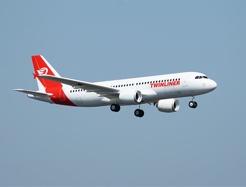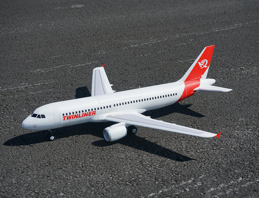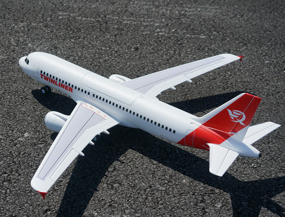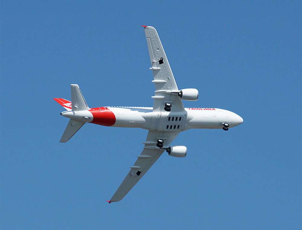 Both front and rear landing gears are fitted with dual wheels, which equips the plane with a strong grip to maintain accuracy and stability while taxiing on the ground before takeoff or after landing. The battery compartment is located in the middle of the fuselage, which allows the plane to easily achieve a proper Center of Gravity. Assembly is quick and simple with no glue required. The model is conveniently sized for flying at large parks, sports fields, or traditional RC flying fields and so it can be stored and transported without disassembly. It can fit fully assembled in just about any vehicle. The Twinliner is fully painted and available in two versions, decals pre-applied or NOT pre-applied (but included in the box) which is ready for any further painting or customisations.