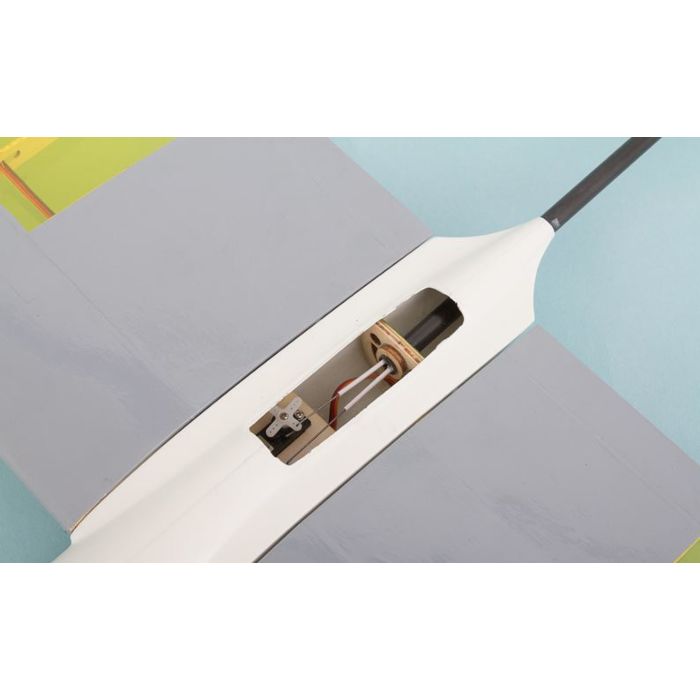 The wings are built in rib construction, have continuous pine spars and boxing with grooves, so that assembly on any flat building board is quick and easy. The trailing edge planking is also grooved so that nothing can go wrong with the position of the ribs. This also enables beginners in wooden model building to quickly create their own perfectly built and well-flying model. The wings are made of lasered wooden parts. All parts are precisely cut and require little reworking. Due to the simple and precise construction, model-relevant values such as V-shape or EWD are set automatically and do not have to be adjusted manually.