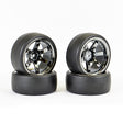 FASTRAX 1/10 (4) DRIFT D1 TYREw/9MM 6-SPOKE WHEEL- BK CHROME
