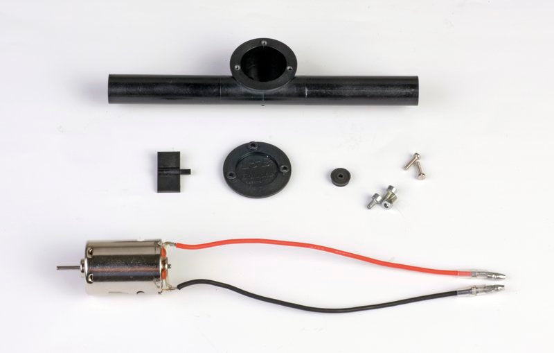 Plastic housing with enclosed SPEED 400 electric motor and 2 pipe extensions. Also used in RC-Megayacht MOONRAKER. Inlet or outlet pipe Ø 14 mm. Pipe extensions approx. 60 mm long. Total pipe length (extensions attached to the middle part) approx. 165 mm. Total height with motor approx. 65 mm. Technical data Motor see order no. 1794