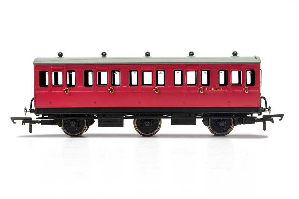 Hornby R40078A BR Crimson 3rd Class 6 wheel coach E31085E