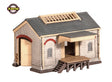 This kit represents a typical Goods Shed, essential to most railway stations for the storage and transfer of dry goods to road vehicles for distribution. The Peco range of wagon loads (e.g. NR-203 Timber Loads) for 10 and 15 ft. wagons provide realistic deliveries. Supplied with some pre-coloured parts, painting and/or weathering can add realism; glue is required to complete this model. Footprint 90mm x 70mm