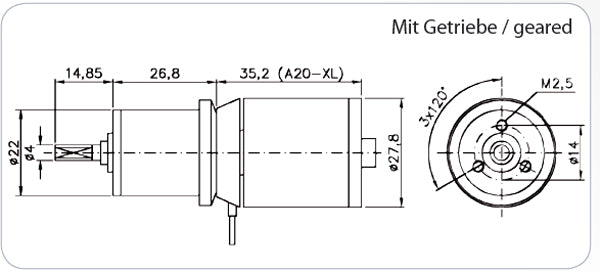 This Hacker A20-6xl is a 1500Kv motor and is fitted with a 4.4:1 Maxon gearbox, with 4mm output shaft. It is ideal for upto 3.5m electric gliders using a 23x12 prop on a 3s lipo setup producing over 450watts. One of the top motors in E soaring competition or performance sport flying.