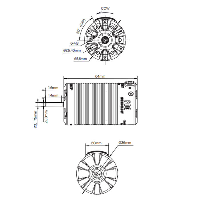 Shaft diameter / exposed shaft length: 3.175mm/16mm