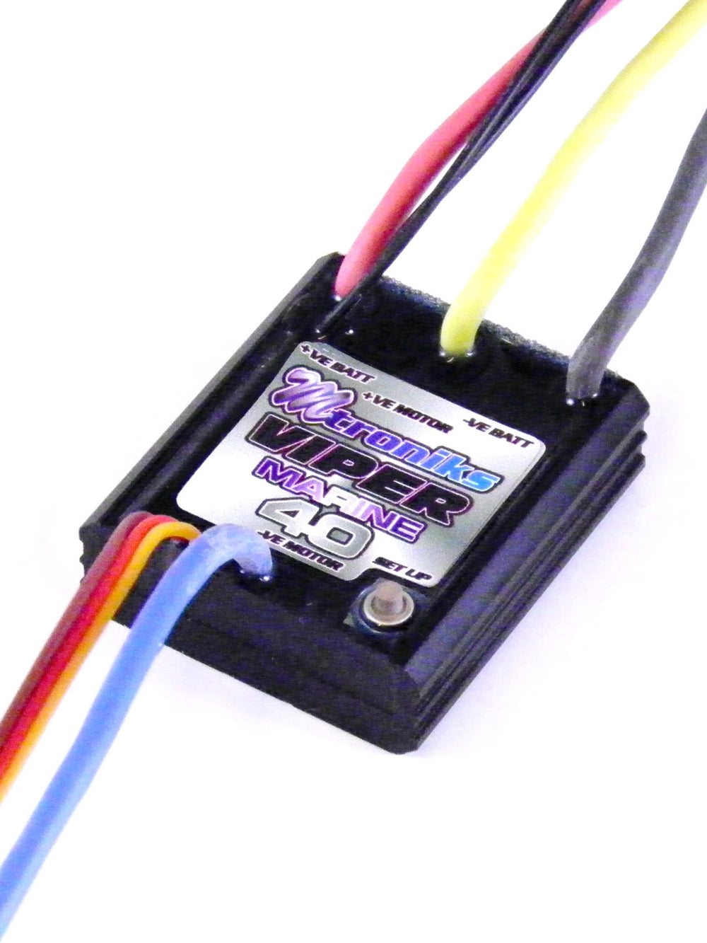 The Viper Marine40 is a brushed speed control designed specifically for use in RC model boats.
