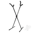 Fact: Comfort at the flying field is underrated. It's true! Why grovel around on your hands and knees plugging in batteries, carrying out maintenance and cleaning your model, when you don't have to? Get yourself one of these tough and tidy MPX model stands and kiss goodbye to soggy trousers and back ache. Light, super-fast to erect and supplied with pegs for added security, you'll wonder why you haven't bought one before.Quick and easy to assemble. Height and width adjustable. Folds away for easy storage. Takes a maximum 50kg load. Features protective foam carrier arms. Folded size: 105 x 51mm 1x Black anodised aluminium model stand. 4x Ground pegs.